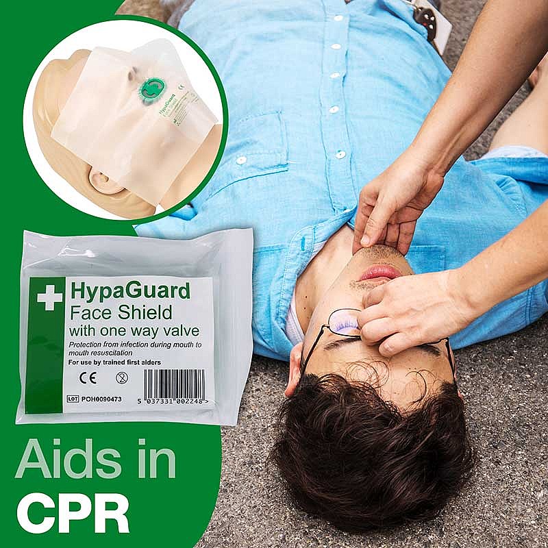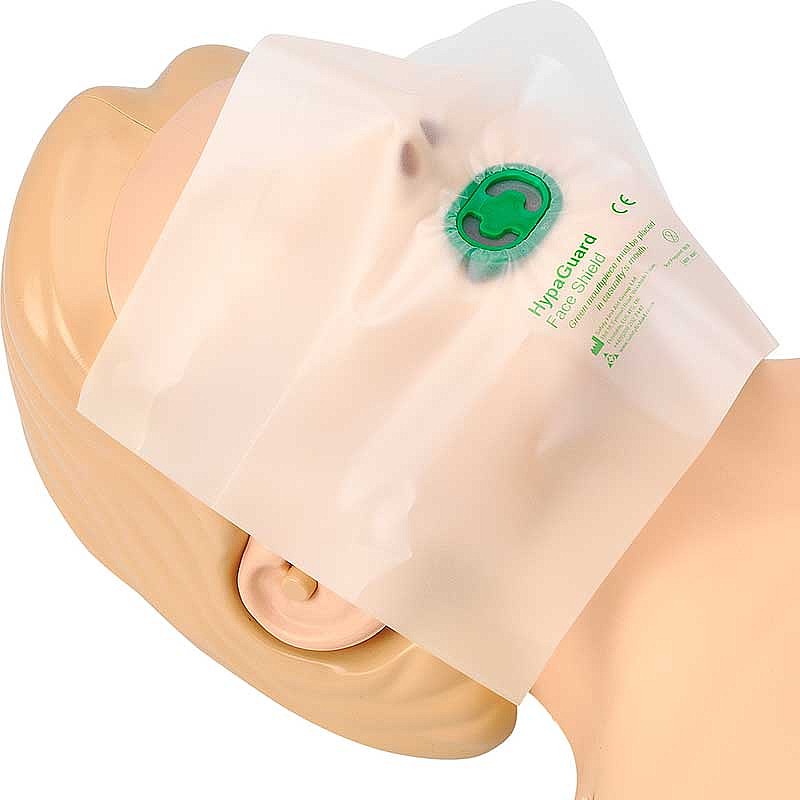 Το HypaGuard Face Shield είναι μια οικονομική αλλά αποτελεσματική λύστη για την ασφαλή παροχή αναπνοής διάσωσης (CPR), ειδικά όταν μπορεί να υπάρξει επαφή με αίμα ή σωματικά υγρά. Διαθέτει πλαστική, μονής ροής βαλβίδα (one – way valve) που εμποδίζει την επαναπροώθηση εκπνεόμενου αέρα και την είσοδο υγρών, μειώνοντας έτσι τον κίνδυνο μόλυνσης τόσο για τον διασώστη όσο και για τον τραυματία.